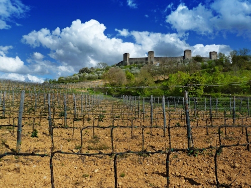 Tag: nuvole, cielo, torri, viti, mura, verde, pali, azzurro, vigneto, alberi, filari, castello, collina, campagna, paesaggio, terra, piante, monteriggioni, vigna, terreno.