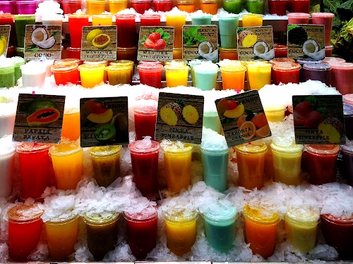Foto dell'autore piadvc candidata al contest fotografico variopinto su Dizy. Data inserimento: mercoledì 8 giugno 2022. Titolo: I variopinti succhi della Boqueria