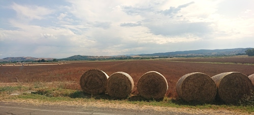 Foto dell'autore marivodo candidata al contest fotografico cinque su Dizy. Data inserimento: giovedì 28 agosto 2025. Titolo: Cinque rotoballe a bordo campo