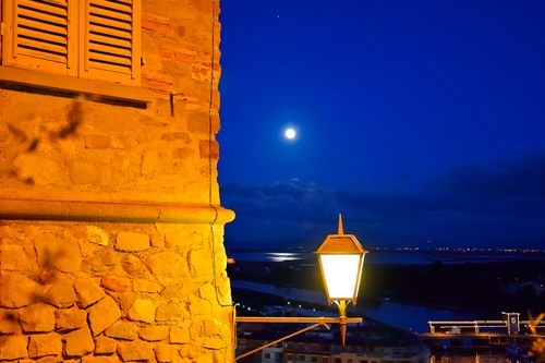 Foto dell'autore MAURO SCLANO candidata al contest fotografico lampione su Dizy. Data inserimento: giovedì 16 gennaio 2014. Titolo: Castiglione della Pescaia,lampione con luna