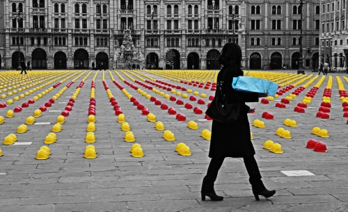 bello il cromatismo degli elmetti in contrasto con il nero della persona ![]() |