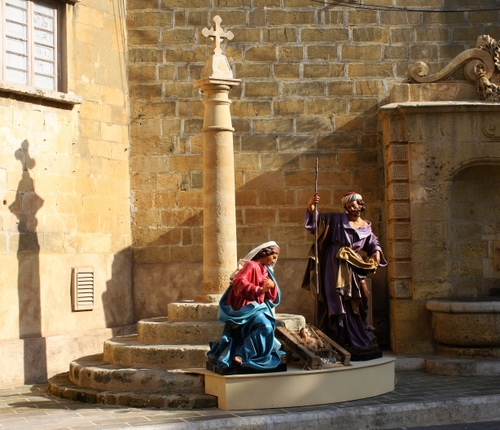Presepe minimale in una piazzetta di Victoria, sull'isola di Gozo (Malta). Dicembre 2015.