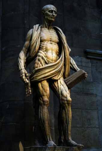 La notevole statua di San Bartolomeo scorticato, opera di Marco d'Agrate (sec. XVI), che si trova nel Duomo di Milano.