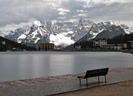 Tag: panchina, panorama, montagna, montagne, neve, cielo, nuvole, prato, paesaggio, dolomiti.