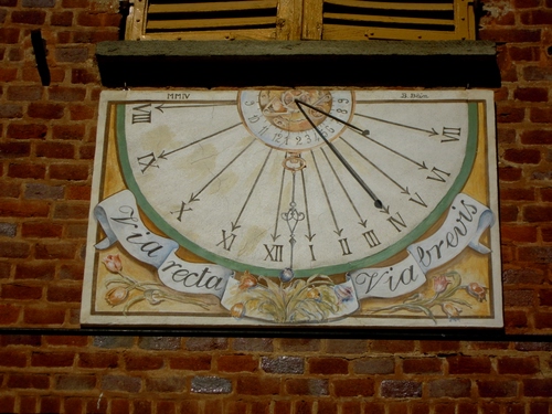 Altri tag (senza riscontro): murales, semicerchi, solare, frecce, parole, fiori, disegno, palazzo, lancette, dipinto, ora, davanzale, semicerchio, simboli, gnomone, giallo, lettere, cartiglio, latino.