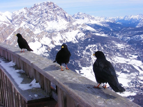 Altri tag (senza riscontro): vette, balaustra, rocce, panorama, ringhiera, becco, parapetto, blu, cielo, neri, su, volatili.