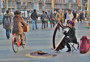 272° turista o passante al pianoforte della stazione centrale di Milano